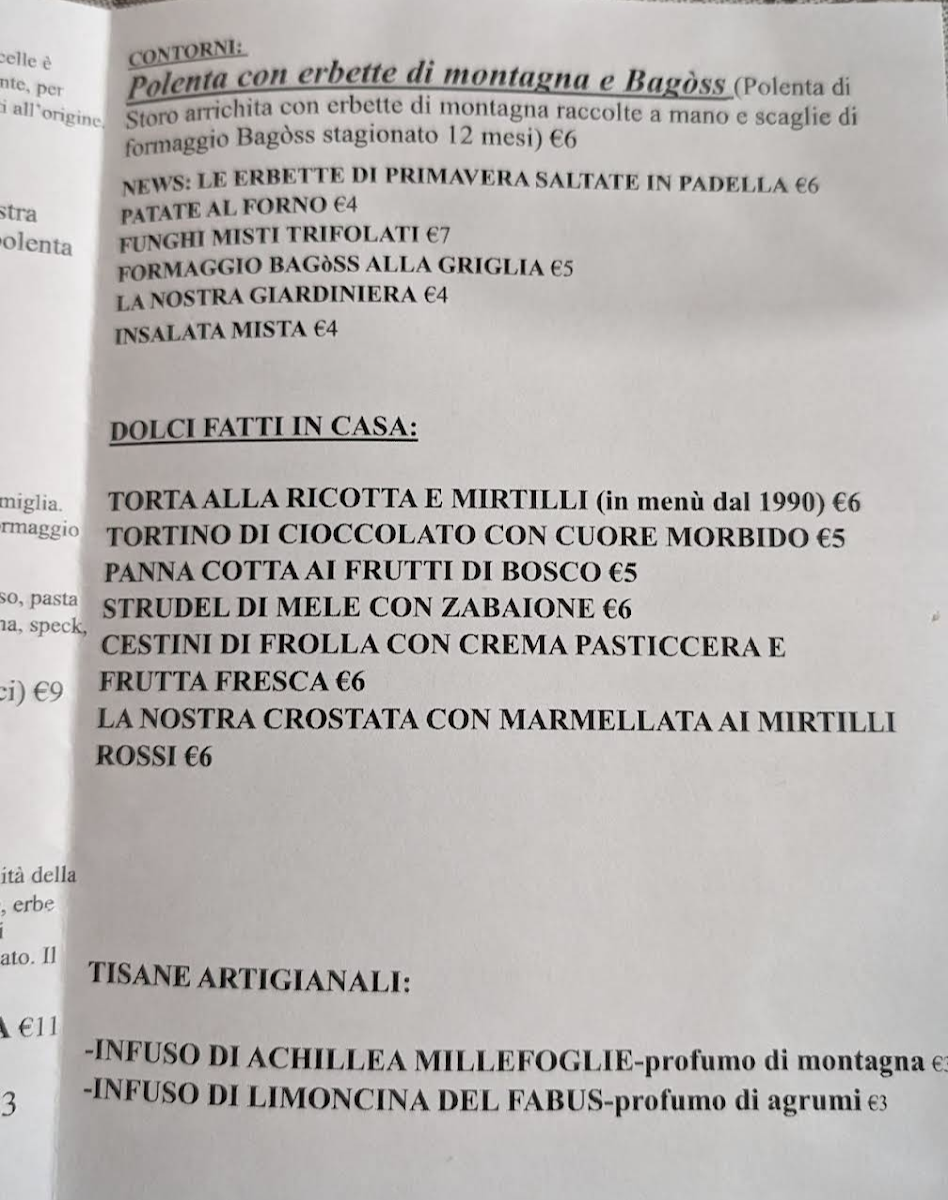 Nestled in the scenic Località Maniva-Fabus, Fabus da Mandolì is a culinary gem that celebrates local flavors and tradition. This quaint eatery offers an inviting atmosphere that’s perfect for a relaxing lunch stop. Reviews speak highly of their exquisite polenta and game meats, prepared with a passion for local specialties. Guests rave about the warm, familial service, making every visit feel special.